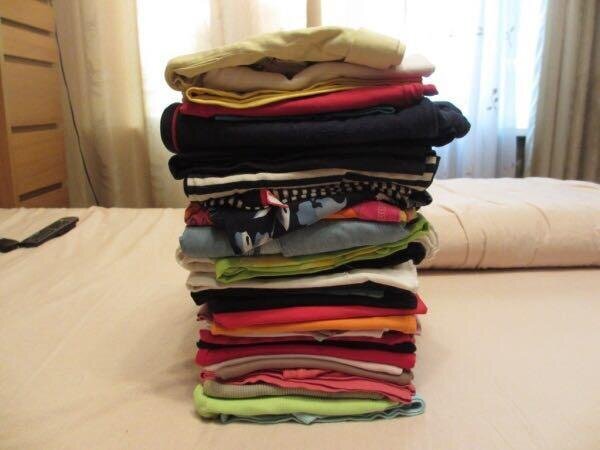 Обычно после такой большой разборки шкафов набирается несколько десятков вещей: моей, мужа и дочки. Часть вещей я сразу откладываю на выброс, обычно это колготки, носки, нижнее белье и то, что носить вообще нельзя. Иногда муж берет какую-нибудь вещь в гараж и для машины. И то не всегда, многое зависит от ткани.