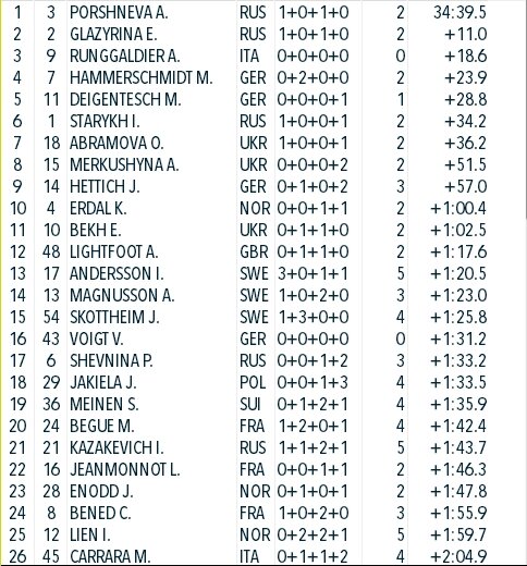 Сегодня на кубке IBU прошёл масс-старт в формате 60-ти спортсменов, а не 30-ти как обычно. Победили россиянки, третья - итальянка Рунгальдье.