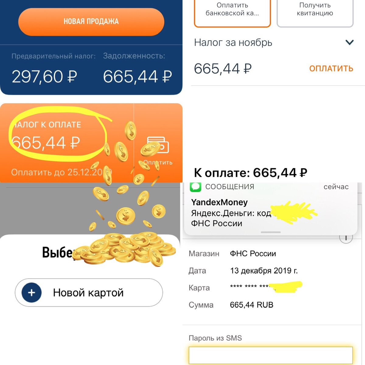 Я уже подробно описывала, как я перешла на самозанятость, что мне это дало. И зачем вообще я так сделала. В конце статьи оставлю ссылочки. Если интересно будет, почитаете. А сегодня хочу подвести итоги ноября, почему сегодня, в середине декабря, спросите вы, да потому что мне пришло оповещение об оплате налогов. И главное, что это так просто, никаких тебе бумажных писем, не нужно идти в налоговую Все гораздо проще. В начале месяца я не поняла. В приложении была указана сумма, которую должна была заплатить. А в начале декабря, начала начисляться новая сумма, а та пропала. Но, это длилось не долго, после 10 чисел (вроде, я зашла именно тогда в приложение) высветилось оповещение, о том, что пора оплатить #налог в размере 655 рублей, до 25 декабря. Я сразу принялась за оплату. Делала это с карты #яндекс деньги на которую и перечисляются деньги с #яндекс дзен Добавила карту, получила смс с кодом, подтвердила, оплатила. Все достаточно легко. Деньги не сразу приходят на счет. В течение н