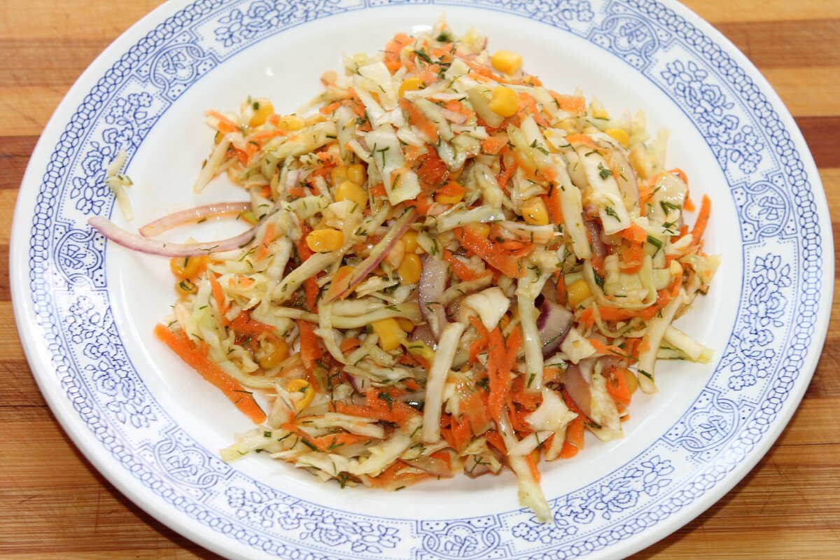 Салат из свежей капусты с кукурузой. Вкус как в столовой! Читайте и смотрите видео.