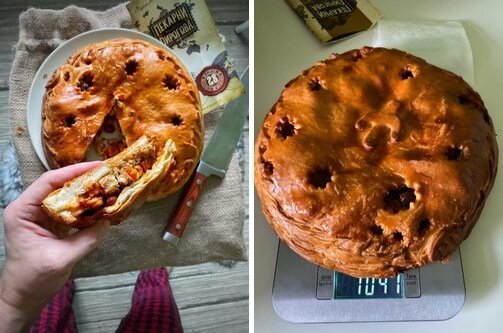 Сегодня крепко захотелось пирога, а дальше всё как в тумане. Забил в Гугл «доставка пирогов Минск», на первом месте Пирогов.бай. Окей, вызов принят. Заказы на сегодня собирают до 13:00, я успеть! Фри доставка от 60р, принимают карты. Килограммовые пироги от 19р за капусту с грибами до 65р за утку с брынзой по-рождественски для олигархов. Есть сладкие и несладкие, аукционные и извращённые, французские открытые, пироги мексиканские на всё согласные, русские - доступные, острые, перчённые, руками кручёные. Вспомнился фильм «От заката до рассвета». Выбор пал на Мексиканский с курой, помидорами, фасолью, кукурузой и острым перцем. Просят 28р за 1000г +4р доставка в норку. Напомню, у любимых Штолле за хоть что-то с мясом начинается от 34,80р с курицей и брокколи за тот же кг. Да, хорошо быть монополистом. Заказал в 10:46, привезли в 15:44, уже успел проголодаться и переволноваться. Сразу положил на весы, - 1041г, всё ОК. Выглядит достойно, тесто мягкое внутри и хрустящее снаружи