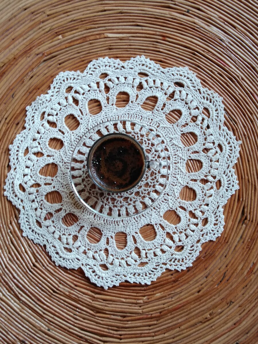 У меня все время крутится мысль, а почему мне хотелось освоить вязание именно крючком? Может потому, что он похож на волшебную палочку? А возможно потому, что он не занимает много места и его можно взять с собой повсюду, а может и потому, что с первых рядов вязания крючком (особенно это касается круглых ажурных салфеток) уже видна красота и нежность будущей салфетки? И так, как вы помните, я отправляюсь к женщине, которая вяжет крючком и попадаю в, так сказать, квартиру - музей, так много у нее было больших и маленьких, воздушных, как белые облачка, ажурных салфеток. Помню, что с собой я взяла крючок, который был дома, где-то на 2,5 (деловая!) и нитки. Начальная петля, без которой нельзя начать вязание, получилась у меня быстро. Затем воздушная петля, столбик с одним накидом, двумя и так далее и вот с этим багажом я возвращаюсь домой и начинаю вязать. Было сложно, в связи с сильным натяжением нити, вязание шло очень туго, болели пальцы, но главное ведь итог! Со временем я научилась в