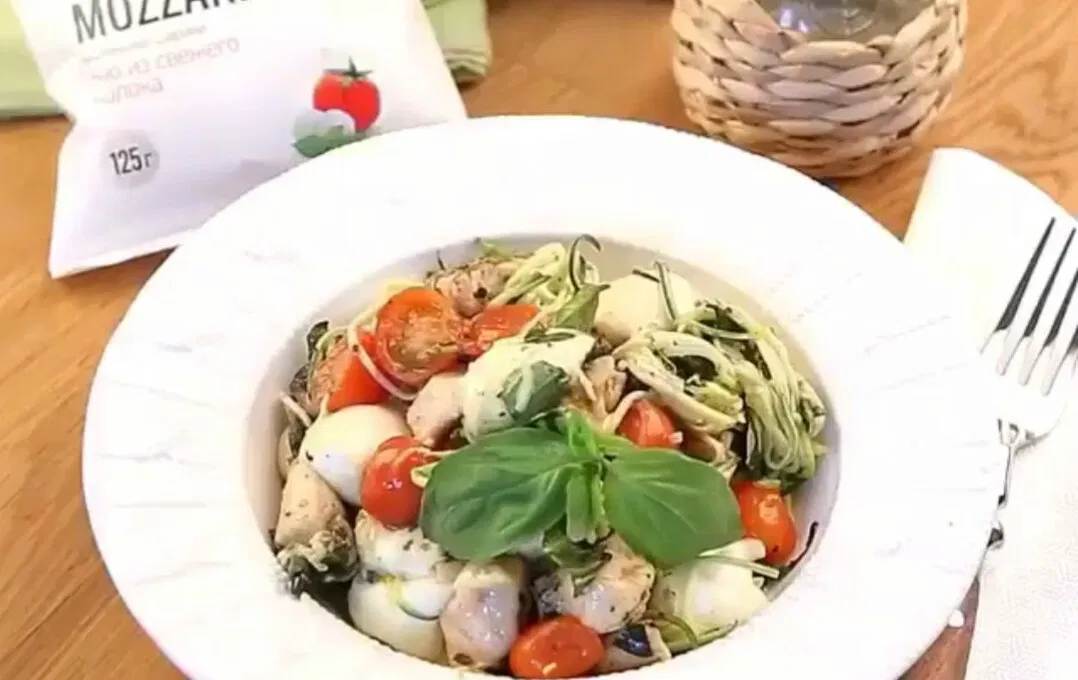 Конечно же , наше блюдо не сможет заменить вкуснейшую настоящую пасту , но, зато, оно не отражается на весе))) Ингредиенты: Как готовить: Куриное филе нарезать средними кубиками Цукини натрите тонкой соломкой на терке для корейской моркови Мелко порубите чеснок и базилик , помидоры черри разрежьте пополам Курицу с орегано обжарьте на небольшом количестве оливкового масла до готовности, посолите, поперчите В другой сковороде также обжарьте чеснок , далее добавьте помидоры, через пару минут цукини и базилик, перемешайте и туда же курицу и шарики моцареллы, перемешайте и оставьте прогреваться вместе еще минут 5. При подаче украсить свежим базиликом!