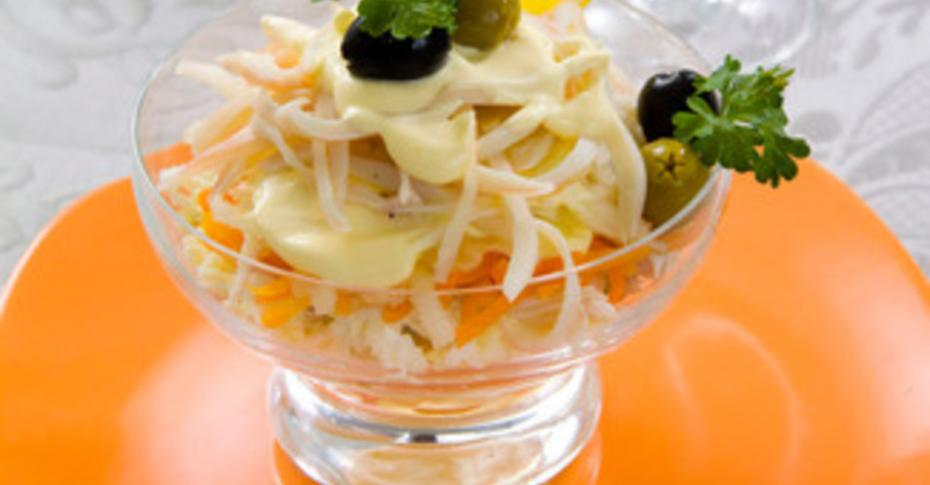 Я тут подумала и поняла, что ни разу еще не давала вам рецептиков салатов с кальмарами. Пора устранять эту проблему. Тем более, что скоро Новый год. Смело сохраняйте подборку, чтобы оценить один или даже несколько салатов на этот Новый год. 1. Салат Морской царь Это самый морской салат из всех мне известных. Он точно придется по вкусу тем, кто любит рыбу и морепродукты. Для приготовления вам потребуются: Кальмары отварите и нарежьте соломкой. Отварную морковь и яйца нарежьте кубиками. Капусту нашинкуйте, посолите и разомните. Лук мелко нарежьте и отправьте жариться. Туда же отправьте и нарезанную рыбу. Не забудьте посолить по вкусу. Смешайте все продукты и заправьте майонезом. 2. Салат Император Еще один прекрасный салатик. Для его приготовления вам потребуются: Снова отвариваем кальмары и нарезаем соломкой. Яйца и яблоко нарезаем на кубики. Мелко нарезаем лук-порей. Смешиваем все ингредиенты и заправляем икрой, а также майонезом. 3. Салат Морская фантазия Ну вот мы и подошли к посл