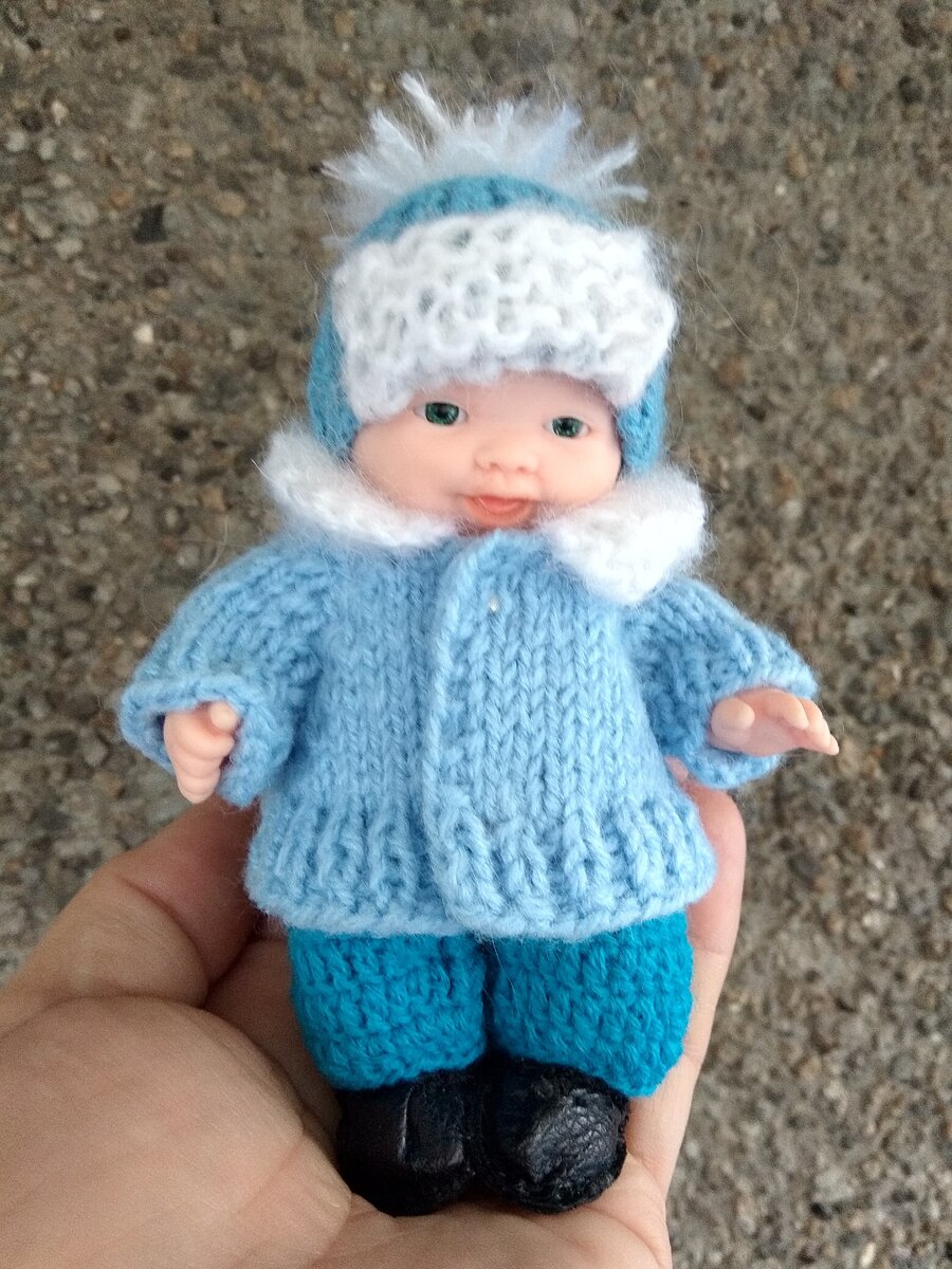 Решила сделать подарок для дочки женщины моего сына, второклассницы. Ну думаю куплю прикольных пупсов и свяжу им гардеробчик , которого ни у кого нет, так сказать авторские модельки. Из детства помню как мне хотелось в таких пупсов играть, а уж если и одёжки полно, то это вообще радость несказанная. Это сейчас в магазине "любой каприз" , но сделанное своими руками с любовью и вдохновением это совсем другое ощущение....Но это я отвлеклась.. Так вот купила я пупсов, с живыми глазками, таких ми-ми-мишных и ..понеслась душа в детство. Сначала я занялась малышом и вот что получилось. к зиме готов это осенний вариант: вообщем есть в чём на люди показаться Куколку я наряжала с особым удовольствием. типа"Красной шапочки" юбочка с топом Кто вяжет , меня поймет, что остановиться невозможно, а сколько еще замыслов в голове... Но самое печальное, что спросив ее маму как она отнесется если я подарю ее дочери этих малышей , она равнодушно ответила, что дочь не любит играть в куклы. И вот слег