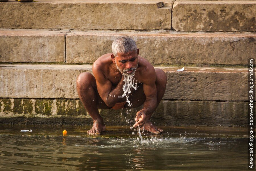 Поэтому сотни миллионов индийцев приходят сюда каждый день, моются, чистят зубы и пьют из нее, не переживая о своем здоровье.