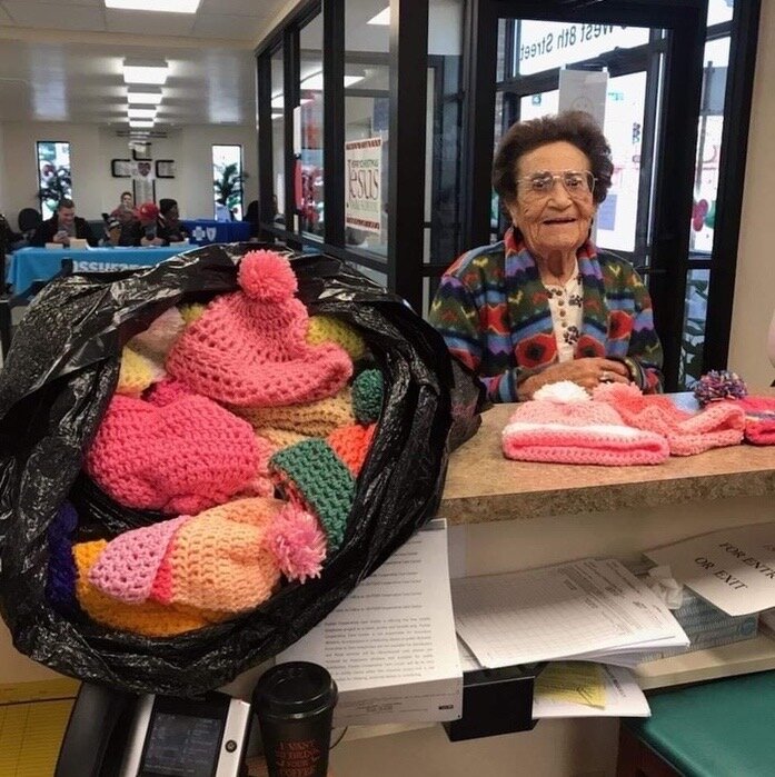 Эта женщина каждый год приносит в приют сумку с шапками, которую она вяжет с января по декабрь