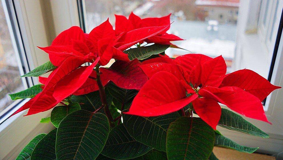 Обворожительная пуансеттия обычно появляется на окошках к зимним празднествам. Это роскошный подарок и привлекательное растение для домашней коллекции. Продают её с яркой верхушкой прицветников разной окраски –белые, алые, бардовые, желтые и даже фиолетовые тона. Молочай прекраснейший (ещё одно название) долго радует компактным кустиком и яркими красками, но в конце приходит разочарование – листья и цветы осыпаются, ветки оголяются и вытягиваются, и цветок теряет привлекательность. Многие считают растение одноразовым и в конечном итоге расстаются с ним. Если следовать несложным правилам, рождественская звездочка будет расти и радовать многие годы. 1. Доставив красавицу домой, не надо спешить её пересаживать. Обычно она находится в питательной среде, и «голодать» не будет до весны. 2. Дома пуансеттии определяют светлое, ещё лучше солнечное местечко. Но ограждают от сквозняков и сухого воздуха от батареи. Чтобы создать влажную атмосферу, можно поставить на поддон со мхом сфагнумом,