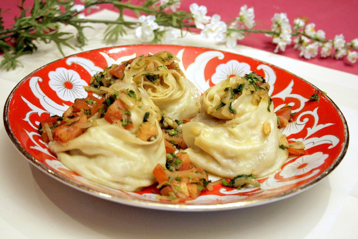 5 Все заготовки уложить на листы мантоварки, предварительно смазанные растительным маслом, и готовить на пару 30-40 минут.