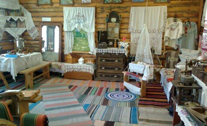 Здесь представлены традиционные предметы крестьянского быта: кросна, прялки, детская зыбка, утюги, светец и многое другое. Посетители музея узнают много интересного о жизни белозер в далеком прошлом, об окружавших их предметах и связанных с ними поверьях и обрядах