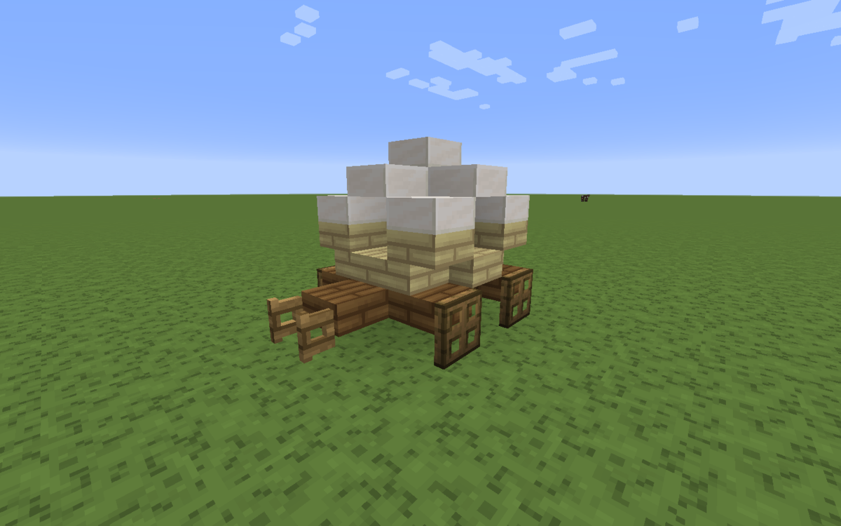 Для постройки кареты нам понадобятся: еловая плита (полублок), берёзовые ступеньки, берёзовая плита, кварцевая плита, люк и еловая калитка. (использовать можно любые породы древесины)