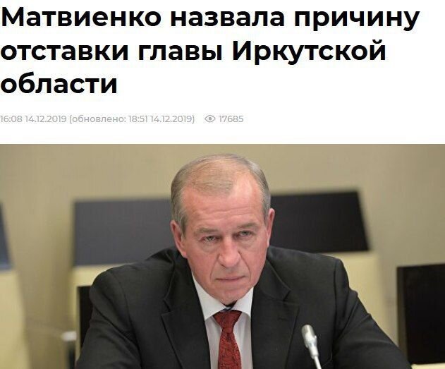 Матвиенко назвала причину отставки главы Иркутской области