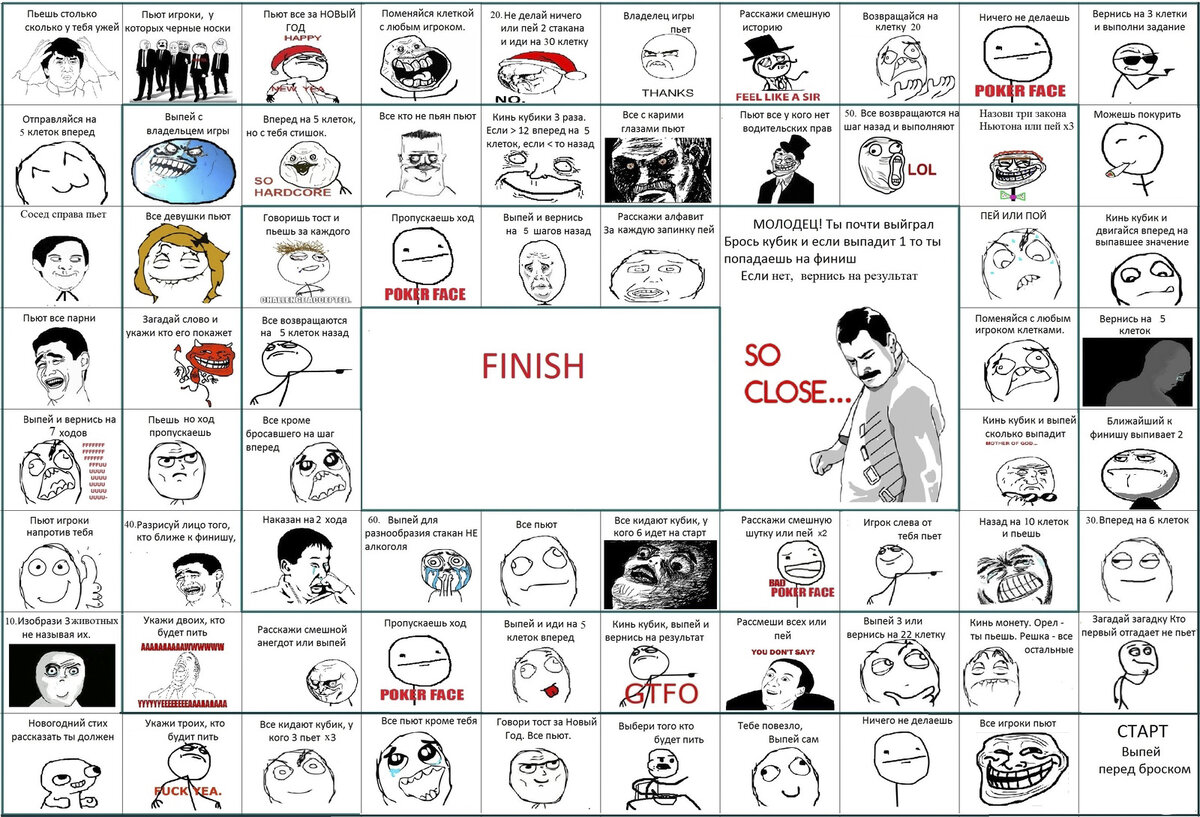 Старт, финиш и предфинишная клетка у нас совпадают с первым примером. Пункты "Тост, все пьют" раскидываем равномерно по "дорожке". У нас примерно 7 штук. Скажете мало? А умножьте на количество игроков? Вот то-то же!