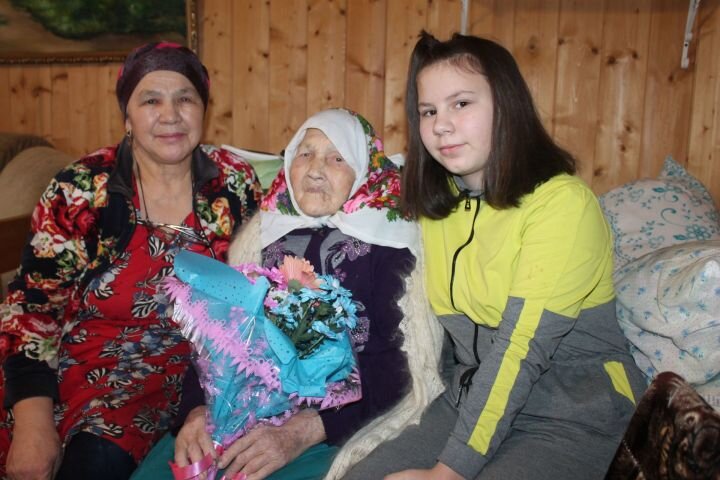 Начальник отдела социальной защиты Лейсан Галяутдинова поздравила ее с юбилеем, вручила Благодарственные письма Президента России Владимира Путина, главы района Ильшата Нуриева, памятный подарок и букет цветов. Свои поздравления Кариме апа выразила и вручила подарок также глава Среднеатынского сельского поселения Резеда Батталова.