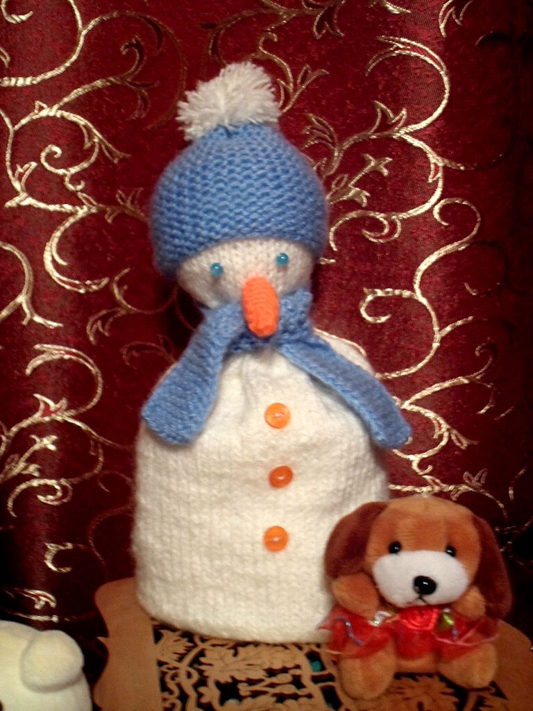 Вязаный снеговик (грелка на кружку или просто новогодняя поделка)