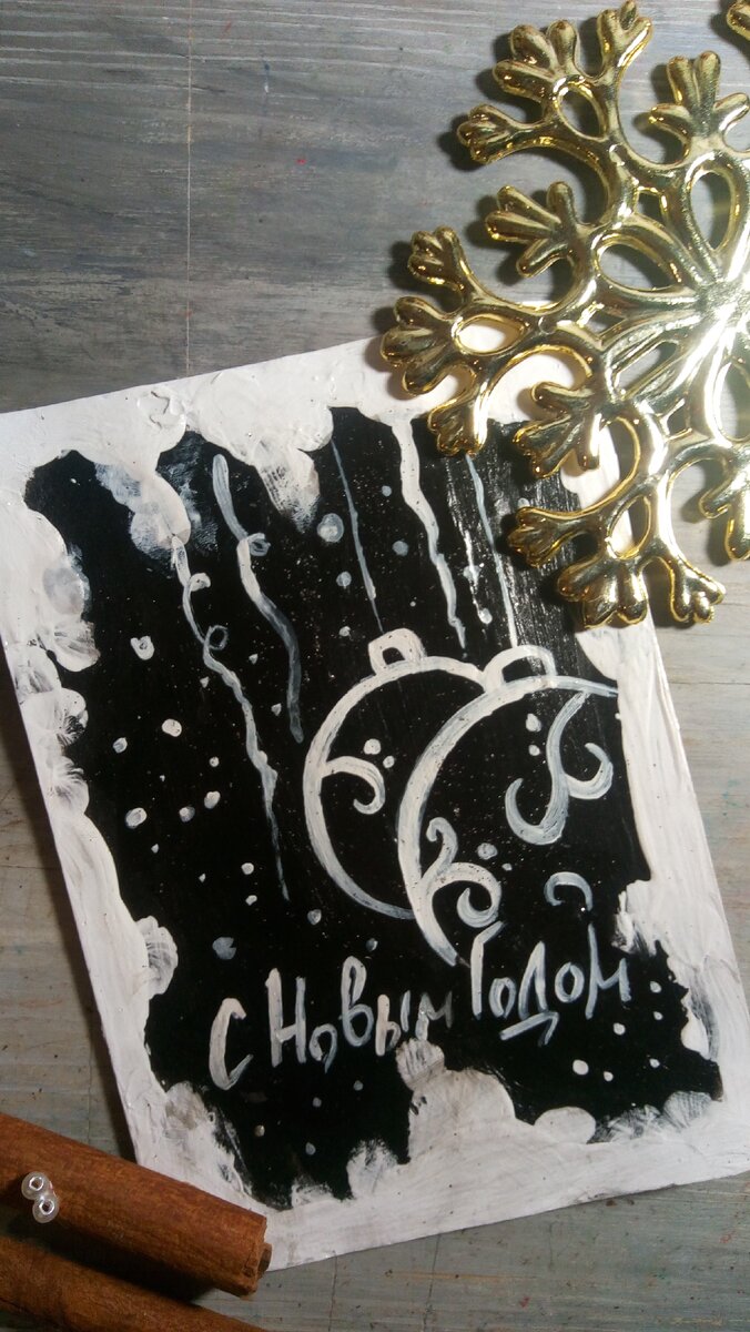 Всем привет! Продолжаем нашу серию двухцветных открыток. Первую открытку рисовали здесь. Напоминаю, что я не настаиваю на черном цвете, выберите любой другой. Главный принцип — контраст и простота, а какой цвет Вы для этого возьмёте совершенно неважно. Не можете читать сейчас? Подписывайтесь на инфоканал автора. Анонсы статей и творческая информация, которую я не даю на Дзен канале (распродажи в творческих школах, интересные марафоны, закрытые уроки от автора канала и др.), жмите и переходите по нужной ссылке: Карта канала (здесь все актуальные ссылки на ресурсы автора) Как подготовить основу, я писала в прошлой статье (ссылка выше), а сейчас мы сразу начинаем рисовать. Наметки делаем белым карандашом, мелком, да хоть кусочком мыла, если Вам удобно. Намечаем два круга, друг за другом, на разной высоте. Добавляем прямоугольную шапочку (наверху прямоугольника дуга, чтоб все-таки это смотрелось более живо, это же цилиндр) и верёвочки. Берем в руки белую краску, обводим наши шарики. Делае