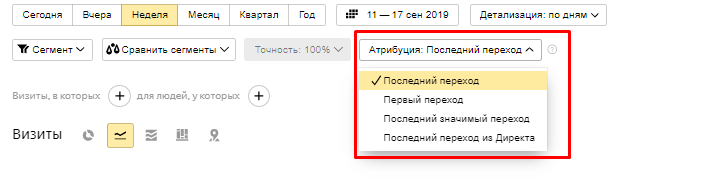 Чтобы точно определить источник перехода, необходимо использовать модели атрибуции. Визиты по-разному распределятся по источникам в зависимости от модели.