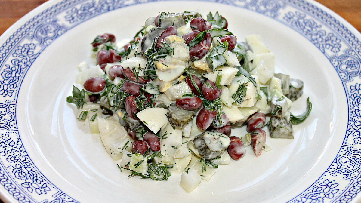 Салат с красной фасолью и яйцами. Читайте и смотрите видео.