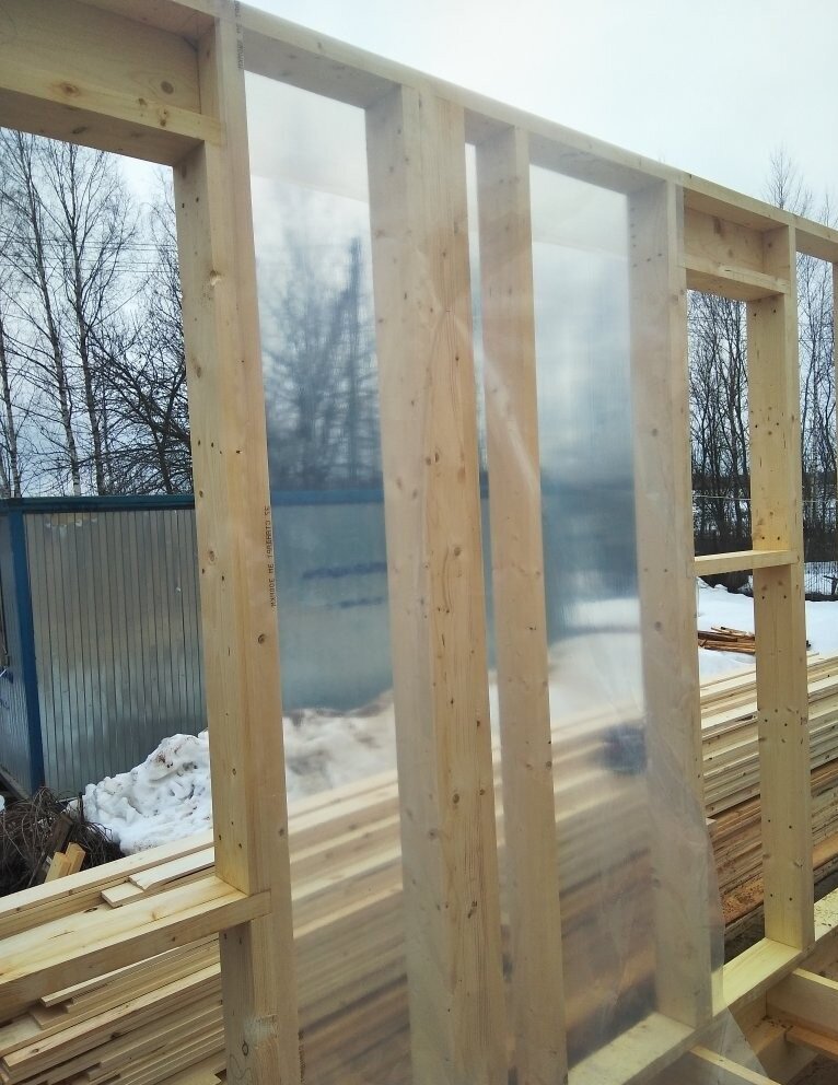 Между стеной и перегородкой, предварительно проложили слой пароизоляции. В качестве пароизоляции, будет применён полиэтилен 300мкм (по факту 250мкм, но полиэтилен реально прочный!). Каркас не "скандинавский", поэтому в проёмах двойные стойки и хедеры... хедеры сделаны из доски 190*45мм. Так как будет поперечное утепление, то в зоне дверных проёмов, двойные стойки выполнены из доски 190*45... сразу с выпуском, это даст лучшее решение по монтажу входных дверей (не нужно будет беспокоится, что крепёж возможно пройдёт между соединением контррейки и стойки). Младший брат с ребятами начинают "навсегда" фиксировать соединение углов стен, примыкание перегородок и соединение стен с перекрытием. Так же выставляют стены по уровню и фиксируют на временные укосины. Ну а я в тоже время, начал готовить торцевые доски с разметкой и лаги для перекрытия второго этажа. Так же зафиксировали стены второй обвязочной доской... И приступили к монтажу перекрытия... Перекрытие второго этажа, содержит т