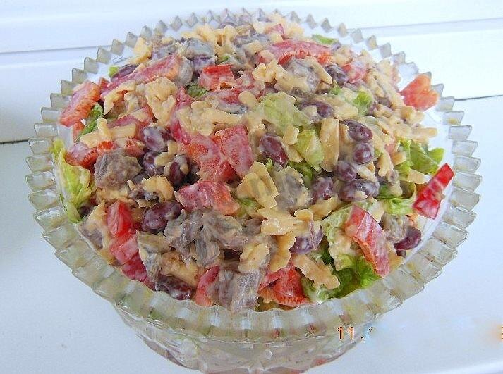 Салат "Кармен" Ингредиенты: -Куриное филе 150-200 гр -Ветчина 150 гр -Помидоры свежие 250гр -Гренки 100 гр -Майонез 200гр -Аджика 15гр -Чеснок 10 гр -Масло растительное для жарки Приготовление: все ингредиенты нарезаем одинаковым брусочком. Сырое куриное филе обжариваем до готовности, можно добавить щепотку приправы для курицы. Я готовила с приправой, придает красивый золотистый цвет. В конце жарки посолить. Ветчину тоже обжариваем на раскаленной сковороде до румяной корочки. Хлеб ржано-пшеничный выкладываем на противень, солим и поливаем небольшим количеством растительного масла, не больше чайной ложки. Ставим в духовку разогретую до 250 градусов, подсушиваем до легкого поджаривания. Помидоры остаются свежими. Все укладываем на плоскую тарелку слоями. Я кладу сначала обжаренное филе, потом половину помидор, чтобы курица пропиталась соком, следующий слой обжаренная ветчина, все промазываем заправкой майонез+аджика+чеснок, затем выкладываем остальную часть помидор. Сверху перед пода