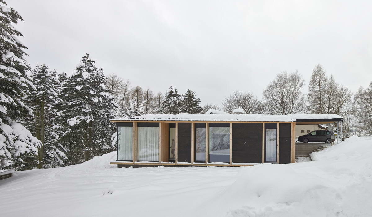 Уникальность этого дома состоит в том, что его ядро составили хорошо сохранившиеся кирпичные несущие стены старого здания. Дом, расположен на краю небольшого поселения к северу от Верхней Австрии, на слегка наклонном участке с видом на окружающие холмы, леса и поля. Крыша существующего дома была удалена, гараж снесён, некоторые проёмы были расширены или закрыты. Внутренняя структура сохранилась и была объединена со вторым пространственным слоем. Новая внешняя стена задает ритм: стенка кабинета, раковина и ванна с панорамным видом дополняют спальню. Две обеденные зоны, одна из которых выходит на юго-восток, другая — на юго-запад, а терраса между ними граничит с южной стороной дома. Площадь увеличилась вдвое — с 70 до 150 квадратных метров и стала новым открытым пространственным континуумом. Здесь нет зон доступа, все помещения жилые. Два архитектурных слоя времени можно узнать по сплошным белым стенам происхождения, а также по расширению из елового дерева и стекла. На первый взгляд кон