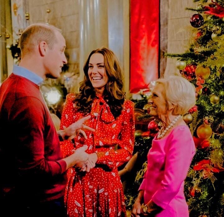 16 декабря на телеканале ВВС в Великобритании будет показана кулинарная программа Мэри Берри, где приняли участие будущий король принц Уильям и его супруга. Пару недель назад мы уже смогли увидеть некоторые кадры со съемок этого шоу, а сегодня появились и новые кадры. Кэтрин Миддлтон для этого события выбрала платье от "Alessandra Rich". Оно выглядит празднично, а бант на шее придает наряду особого шарма. Кстати, Кейт и Уильям в этот день одеты в одну цветовую гамму, и оба их образа подходят под рождественскую ель, украшенную красными шарами. Кэтрин и ее муж очень мило побеседовали с Мэри Берри перед началом шоу. Затем герцоги Кембриджские вместе с другими участниками начали готовить рождественские рулеты для волонтеров, которые будут работать в рождественский вечер. Кейт Миддлтон отлично умеет готовить. Принц Уильям признавался, что сейчас он редко готовит. Мужчина сказал, что он может заварить чай, но все остальное для их семьи готовит его жена Кэтрин. Но во время учебы принц Уильям