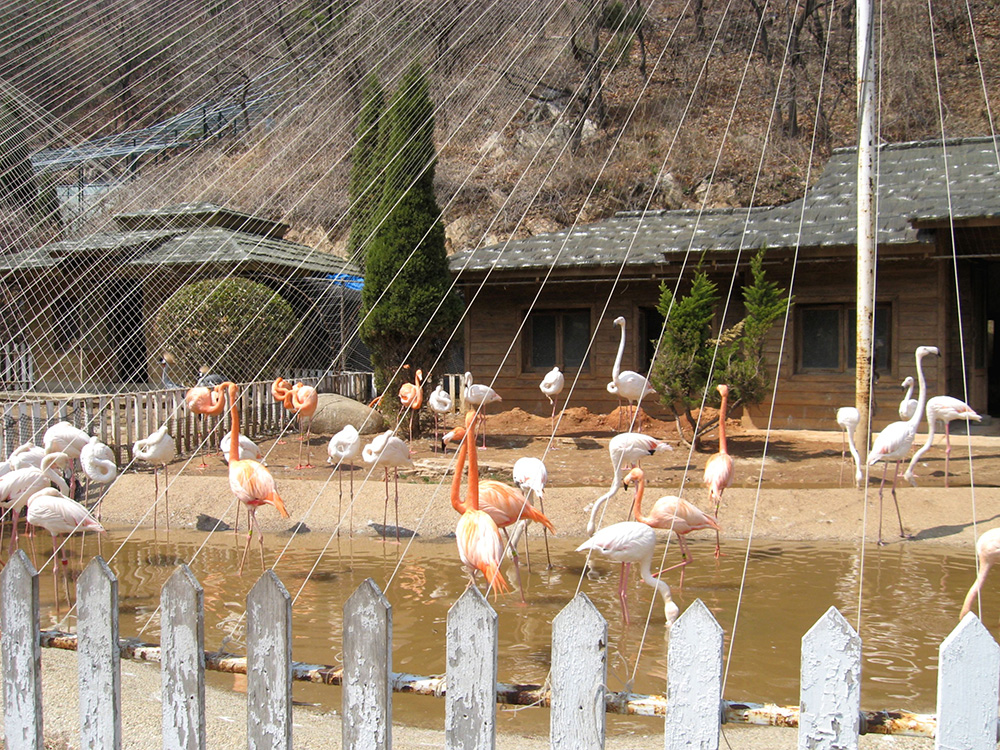 В Китае в городе Далянь неподалеку от водного парка располагается "Птичий лес" (Twittering woods). Это огромный "птичий рай", которым можно любоваться в природных условиях. Парк достаточно большой по своей территории. Большинство птиц могут свободно передвигаться по нему без ограничительных сеток. В центральной части установлен массивный шест, высотой в 10 этажный дом. Данный шест удерживает объемную сеть из капрона, покрывающую всю площадь птичьего заповедника в 18 000 кв. метров. Созданная конструкция предоставляет возможность посетителям наблюдать за несколькими тысячами пернатых, проживающих почти в природных условиях. Изюминкой заповедника являются яркие выступления попугаев, которые проходят каждый день. Умелые птички ловко играют с мячом, гоняют на мини велосипедах, повторяют за людьми различные слова и фразы, а также готовы показать своим гостям всевозможные акробатические трюки.