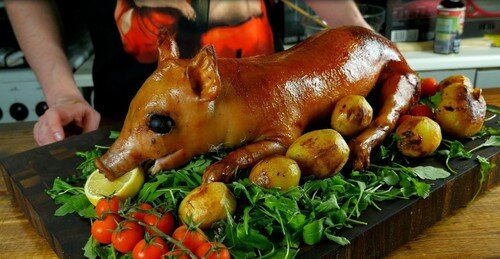 Мясо молочного поросенка составляет серьезную конкуренцию куриному мясу, поскольку имеет такой же минимальный состав жира. Это достаточно эффектное, но в тоже время трудоемкое блюдо, поэтому готовят молочных поросят, как правило, к большим праздникам и торжествам. Ароматный поросенок в духовке Сегодня попробовать молочного поросенка удается не каждому городскому жителю. Блюдо получается очень оригинальным, вкусным, нежным и сочным. Рассмотрим, как приготовить молочного поросенка целиком в духовке, рецепт с фото – ниже.
