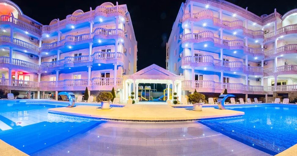 Витязево- поселок под Анапой, славится своими широкими пляжами, открытым морем. Почему туда каждое лето едет столько семей с детьми? Потому что, почти в каждом отеле, есть все необходимое, для семейного отдыха - бассейны, детские площадки, столовая, анимация. Вот самые лучшие отели по отзывам посетителей. Очень хороший семейный отель, по отзывам, очень много людей, приезжают туда снова. Отель находится в центе посёлка, на главной улице Витязево - Паралии, идущей через весь поселок к морю. В отеле работает система «все включёно», есть промежуточное питание, анимационная программа насыщенная, много развлечений для детей, детская площадка, прокат машинок, площадка для спортивных игр. Отель состоит из двух семиэтажных зданий с лифтом, с верхних этажей видно море. Территория отеля, для Витязево большая. Номера ухоженные, есть как стандартные, так и люксы. Шведский стол - разнообразен, есть меню для детей. В баре у бассейна есть пицца и картошка фри. Своего пляжа у отеля нет. Но он нахо