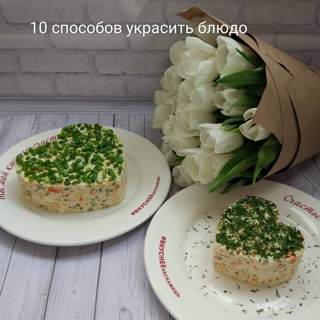 1. Приготовить салат, выложить его в форму Сердца, круга, квадрата и т. д. Форму убрать.