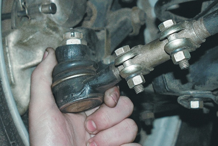 Главная цель диагностики – найти неисправную деталь и своевременно заменить ее на новую. Когда речь заходит о подвеске, в первую очередь необходимо проверить состояние наконечника рулевой тяги. Для этого нужно приподнять автомобиль так, чтобы колесо не касалось земли. После чего его необходимо аккуратно покачать, прикладывая усилие к точке «9 часов» и «3 часа». Подобное действие позволит ощутить люфт (если он есть). После этого одной рукой колесо покачивается в той же плоскости, а вторая рука закладывается за него так, чтобы касается тех самых наконечников. Если между ним и поворотным кулаком будет зазор, то источник проблемы найден.