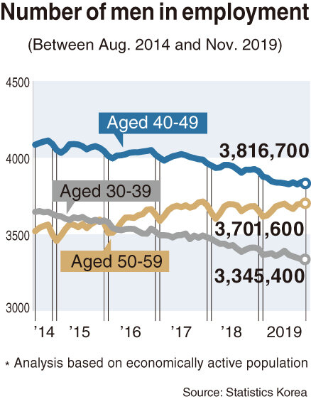 В ноябре этого года в Южной Корее было зафиксировано падение числа занятых мужчин в вышеуказанных возрастных группах, показав снижение в течение 28 месяцев подряд. Это самое длинное снижение с тех пор, как в ведомстве начали собирать соответствующие данные.