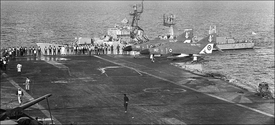 От удара семь человек оказались за бортом. К сожалению, двоих спасти не удалось. Четверых подняли на наш баркас, одного на английский. На авианосце ему дали рюмку коньяку и посадили в горячую ванну, потом его одели в пижаму и уложили слегка отдохнуть, падение не прошло даром. Ещё и закурить предлагали: