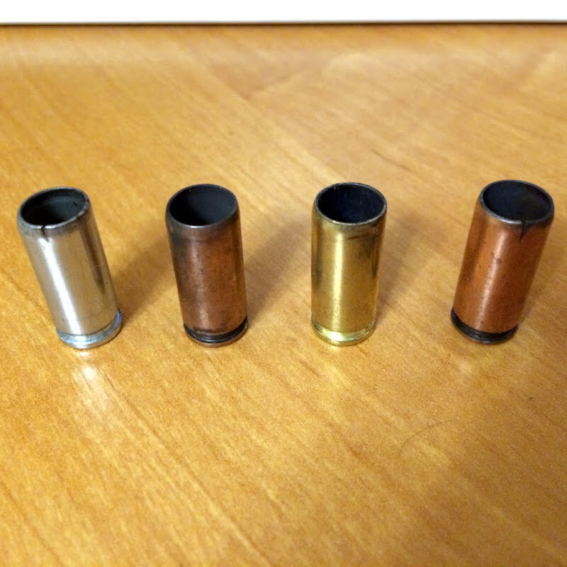 После оооооочень долгого перерыва, получилось сгонять на полигон, пострелять из карабина и из травмата. В прошлый раз удалось протестировать сразу несколько видов патронов 9 P.A. Слева направо: 1. TulAmmo ТПЗ 60 джоулей. Очень слабые, дульной вспышки нет, отдачи почти нет, кучность плохая, летят не пойми куда, часто с 7м даже в мишень не попадают. Нагара мало.