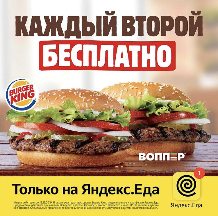 1️⃣ способ Получаем каждый второй Воппер за 1₽ в Burger King 🍔 При заказе через Яндекс.Еду 2️⃣ способ Приходим в макдональдс, покупаем что-нибудь недорогое (кроме салфетки, соуса, вафельного рожка) показываем скриншот (см.выше) и бесплатно получаем чикенбургер или чизбургер