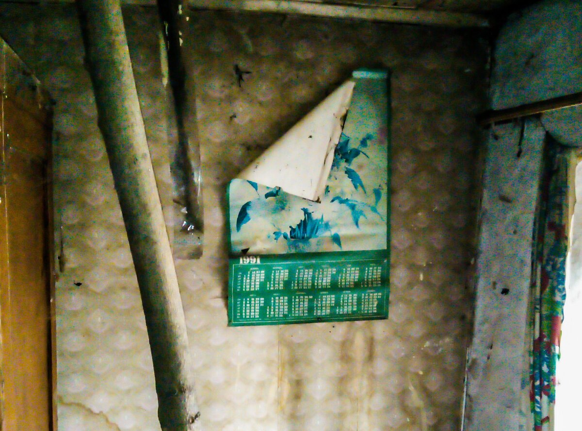 После того, как мы осмотрели небольшую комнату в заброшенном доме, где нашли старый радиоприемник, мы отправились в основную комнату, в которой находилась печка. О находках на террасе и в маленькой комнате я уже писал. Ссылку на ту статью прикреплю в конце. Скорее всего, в этом доме жил радиолюбитель, так как помимо радиоприемника в той маленькой комнатке мы нашли и книгу под названием радиоприемник. Об этом я тоже писал в первой части. А теперь давайте посмотрим, что нам удастся найти в жилой комнате этого дома. На стене этой большой жилой комнаты висел календарь 1991 года. Так что, возможно, этот дом был покинут жителями именно в этом году. Рядом с этим календарем, у двери, стоял старый деревянный шкаф. Дверь его была слегка приоткрыта, и он был абсолютно пустой. А рядом со шкафом, на полу, мы увидели какую-то деталь. Даже не поняли, от чего это. Возможно, это был динамик. Если кто из читателей знает - пишите в комментариях. На стене, с другой стороны, висел старый выключатель. Сейча