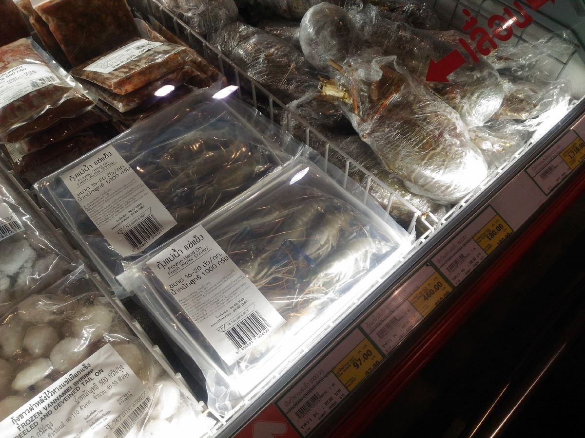 День 7-мой. Тучки. Отлив. Утром прочитал, что в Тайланде почти нет ядовитых пауков. Как-то не удобно стало перед вчерашним. Сегодня я запланировал поездку в город. Почему я? Одному несколько проще управлять байком, не ощущается ответственность за пассажира, вообщем быстрее и спокойнее. Лена ждала у бассейна. Около 9 утра я стартанул, по дороге в город останавливался, что бы сделать немного фото окрестностей. Заправился на известной уже заправке и заехал в первый гипермаркет, типа нашего Метро (мелкий опт), называется Макро. У нас уже пару дней как возникла идея - купить рыбы и креветок и попросить в ресторане отеля приготовить. Но в данном магазине креветок охлажденных не было, а замороженные- по Рязанским ценам. Решено было ехать в знакомый уже Big C Market. Купил разных фруктов, охлажденных средних креветок (350 руб за кг) и те самые скумбрии, которые публиковал на днях. Только цена на них опустилась до 20 рублей за штуку. Выгодно. Еще взял воды, сока, местного пива, немного снеко