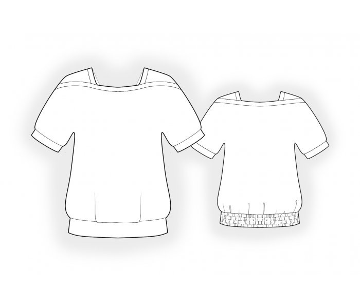 посмотреть модель на сайте Нужны ли простые модели. Некоторых они раздражают простотой, мол я сама такую выкройку за две минуты нарисую. Некоторые радуются их простоте, можно быстро сшить. Внутри нас так же борются разные чувства, вроде как негоже делать простое моделирование, но мы же не для себя делаем. Так что будут у нас и простые модели и сложные. А вот супер простые и супер сложные как-то не пользуются спросом, поэтому их не будет. Ведь если они не пользуются спросом, то они не нужны пользователям, а значит не нужны и нам. Это показывают и результаты голосования за модели. 4780 БЛУЗКА С ЦЕЛЬНОКРОЕНЫМ РУКАВОМ РЕКОМЕНДАЦИИ ПО ВЫБОРУ ТКАНИ: тонкие блузочные ткани из натуральных или смесовых волокон. А ТАК ЖЕ ВАМ ПОНАДОБИТЬСЯ: клеевая прокладка; отделочная тесьма (примерная длина указана на лекале полочки); резиновая нить. ЕСЛИ НА ЛЕКАЛАХ ДВОЙНОЙ КОНТУР, ТО ЛЕКАЛА ДАНЫ С ПРИПУСКАМИ НА ШВЫ, ЕСЛИ КОНТУР ОДИНАРНЫЙ, ТО ЛЕКАЛА ДАНЫ БЕЗ ПРИПУСКОВ НА ШВЫ. ПРИПУСКИ НА ШВЫ: все швы 1 см.