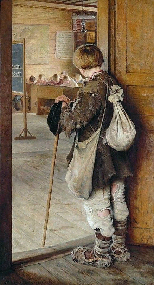 В советское время любили публиковать картину Н.Богданова-Бельского «У дверей школы». 1897 г. Ох уж, этот проклятущий царизм, мешавший народу тянуться к свету! Но обычно забывали пояснить, что это - практически автопортрет художника. Внебрачного сына батрачки. Который после учебы в сельской школе, школе иконописи при Сергиевской Лавре, Московском училище живописи, ваяния и зодчества, в Академии художеств и творческой командировки в Италию, Францию и Германию - состоялся в качестве модного и хорошо оплачиваемого живописца, чьи работы находились в лучших собраниях, в т. ч. царской семьи. Так что на самом деле это полотно - мощная мотивационная картинка о социальных лифтах.