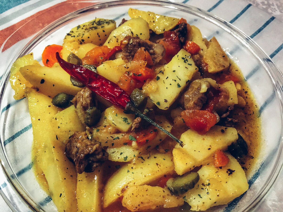 Азу по-татарски очень вкусное и необычное блюдо понравиться каждому. Ингредиенты: 👇 Способ приготовления: 👇 ✔️ Режем телятину кубиками. Обжариваем мясо на сильном огне на растительном масле до румяной корочки в казане. ✔️ Затем обжариваем до мягкости нарезанный полукольцами лук. ✔️ Морковь нарезаем полукольцами и добавляем к луку. Обжариваем до мягкости моркови. ✔️ Соленые огурцы порезать кольцами или полукольцами. ✔️ Помидоры нарезать полукольцами. ✔️ Соленые огурцы, помидоры выложить в казан и добавить томатную пасту. ✔️ Хорошо перемешать и жарить минуты 3. ✔️ Заливаем ингредиенты водой и тушим 1 час на среднем огне. ✔️ По истечению 50 минут добавляем к мясу мелко нарезанный чеснок и томим 10 минут. ✔️ Пока тушатся мясо с овощами, чистим картофель и режем его соломкой. ✔️ Обжариваем картофель в сковороде на растительном масле на сильном огне до корочки. Доводить до готовности не картофель не нужно. ✔️ Картофель добавить в казан. ✔️ Посолить, поперчить, перемешать