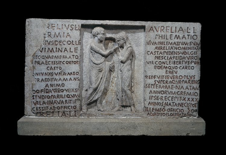 В античных городах некрополи – «города мертвых» - обычно располагались сразу за городской стеной вдоль дорог. И греческие надгробные стелы с изображением печальных родственников, с душераздирающими надписями, обращенными к прохожим, наверняка заставляли последних замедлить шаг. Например, стела Амфареты: «Я держу любимое дитя моей дочери, которое я обычно держала на коленях, когда мы были еще живы и могли видеть лучи солнца. Теперь, мертвая, я держу его бездыханное тело». То есть, бабушка оплакивает преждевременную смерть внука. Поскольку, как все вы уже, наверное, заметили, что мы больше любим писать об обычной жизни древних римлян, нежели чем о каких-то выдающихся событиях, поговорим о самом что ни на есть обычном – о любви. Плохо быть античным рабом, это ведь не человек, – безгласное орудие, не имеющее прав и чувств. Правда, такое отношение общества вовсе не лишало раба чувств по-настоящему, однако выразить их он не мог, они просто не учитывались окружающей действительностью, что, те