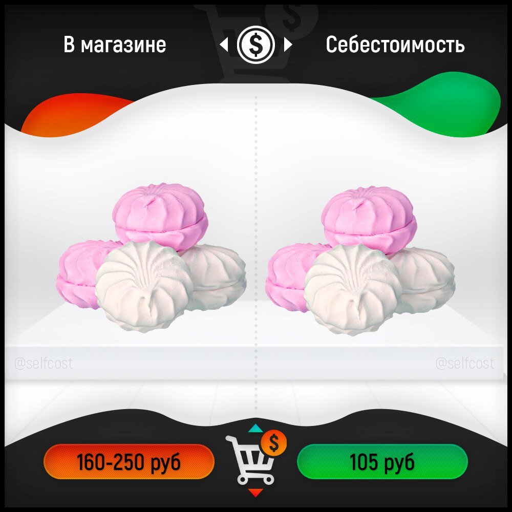 Себестоимость зефира? Ингредиенты\Затраты Сахар (500 г ) — 20р Яблоки (~ 400 г) — 30р Агар-агар ( 8 г.) — 50р Ванилин (пакетик) — 5р Вода (160 г) — 0р Яйцо (1 шт)— 5р Итого: 105 руб. / 1 кг Сравним же цены в магазине. Мы рассматривем именно зефир , похожий по составу с нашим образцом. В среднем цена варьируется от 160 до 250 руб за кг. в зависимости от бренда и качества.