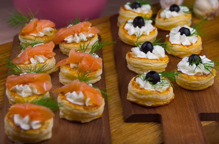 Приветствую всех моих подписчиков и гостей канала «Вкусно-с-Ксю»! Все знают, что ни один праздничный стол не может обойтись без красивой, яркой и вкусной закуски. Сегодня предлагаю Вам посмотреть, как приготовить шикарные тарталетки со сливочным сыром, а также посмотреть разнообразные варианты их украшения. Всего будет 4 варианта. Нам понадобится: Слоеное бездрожжевое тесто 500 гр.