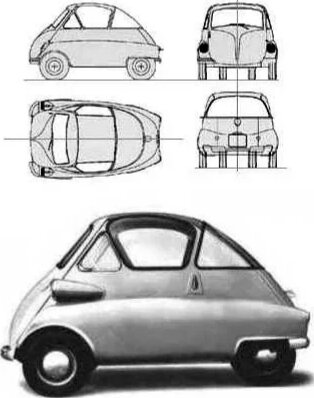 Lsetta этот маленький легковой автомобиль производился после Второй мировой войны. Этот автомобиль пользовался спросом потому что оказался весьма удобным и дешёвым. Так как дешёвый транспорт на короткие расстояния являлся наиболее необходимым. Родиной этого автомобиля стала Италия. Тем не менее, очень скоро модель начала производиться во многих странах, включая Францию, Германию, Великобританию, Бразилию и Испанию. Характеристики этого автомобиля были такие я Итальянцы из фирмы Iso SpA начинают выпуск модели с названием Isetta, которая больше походила на мотоколяску, чем на полноценный автомобиль. Однако компания с Апеннин очень скоро решила продать лицензию на производство «Изетты», чтобы сконцентрироваться на выпуске спортивных автомобилей. Именно за эту возможность и ухватилось руководство концерна BMW, который в то время пребывал в состоянии полнейшего упадка. Сама мотоколяска лишь частично напоминала автомобиль, недаром же ее прозвали не иначе как «автомобиль-пузырь». В целом
