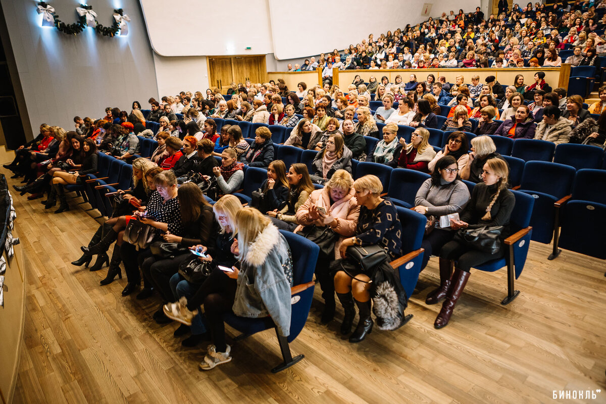 По количеству людей фойе ДК Профсоюзов в среду вечером напоминало встречу с мэром. Единственное отличие: 99% выстроившихся в очередь на входе — женщины. «Вы по работе или для души?» — спрашивает одна у другой. И сразу же отвечает: «Меня пригласили».