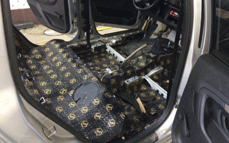 Начнем изучение шумоизоляции авто , на все авто в 1 слой уходит примерно 30 листов шумоизоляции , перед началом проклейки необходимо разобрать весь салон , затем нужно очистить все поверхности от грязи и заводской шумоизоляции, грязи , и тд . После этого нужно обезжирить все элементы железа. Вырезаем по размеру чтобы ничего не выпирало и не заклеиваем штатные места для крипежа салона. Нагреваем, клеим по размеру и раскатываем роликом. И так весь салон. После наклейки шумоизоляции начинаем клеить виброизоляцию, также обезжириваем , нагреваем и клеим виброизоляцию. Далее начинаем постепенно собирать салон. Так чтобы все вставало на свои штатные места и не гремело, и не терлось. Чтобы было все как по заводу.