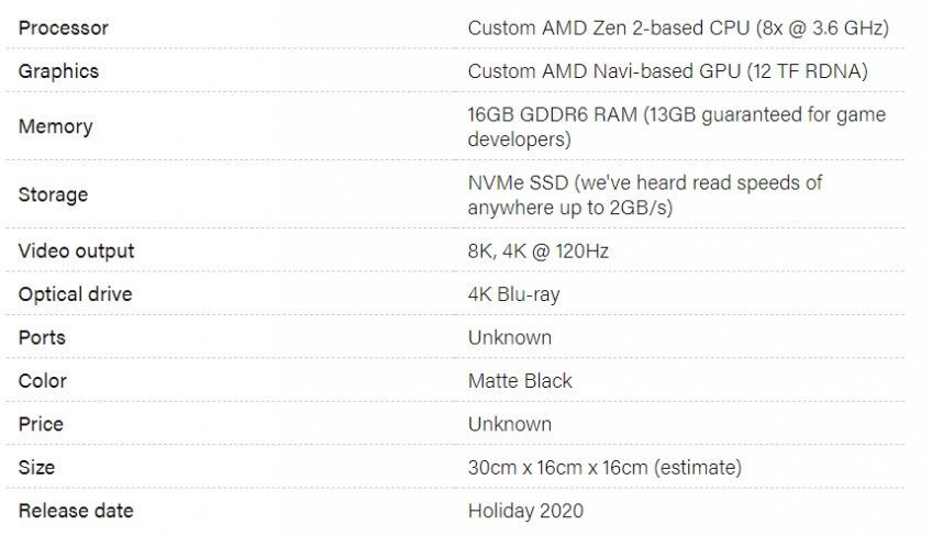 Ранее компания Microsoft анонсировала Xbox Series X, релиз которой запланирован на начало 2020 года. Помимо необычного для этого класса устройств дизайна, новинка примечательна мощной аппаратной начинкой. Ранее уже было известно, что Xbox Series X будет в несколько раз мощнее Xbox One X, однако теперь стали известны конкретные спецификации. Выглядят они так: Консоль, как утверждается, сможет «тянуть» игры в разрешении 4K при частоте 120 Гц. Частота обновления для 8K не уточнятся. Из других особенностей отметим, что процессор основан на архитектуре Zen 2, есть 16 ГБ оперативной памяти, из которых 13 ГБ доступны для разработчиков. А накопитель NVMe SSD будет обеспечивать скорость чтения до 2 ГБ/сек. Видеокарта же, очевидно, относится к поколению Navi. К сожалению, информации о цене пока нет.