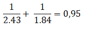 На примере рассмотрим коэффициенты на теннисное событие на предмет наличия букмекерской вилки. Допустим, на победу Джоковича в матче против Надаля предложен коэффициент 2.43. Другой букмекер оценивает вероятность успеха Надаля котировкой 1.84. Подставляем значения в формулу: