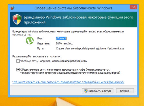 Файрвол запрашивает подтвеждение пользователя для продолжения работы программы