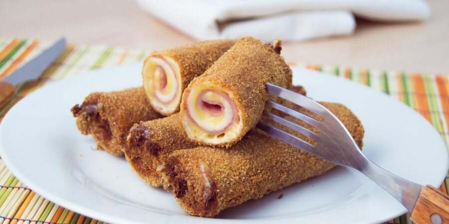 Так...Возвращаюсь к теме бюджетных немецких рецептов! Взято на форуме для дешевых рецептов на нем.языке. На одну порцию. 2 кусочка сыра 2 кусочка ветчины 1 яйцо Мука Панировка. Итак: Берем два кусочка сыра, ложим так, что бы один кусок закрывал второй. На них сверху ложим ветчину, дальше свырачиваем это в трубочку. Окунаем в муку, в яйцо, потом опять муку, яйцо и в панировку. Что бы получить плотную корочку... Жарим в масле до румяной корочки, и подаем с салатом к столу! Приятного аппетита!